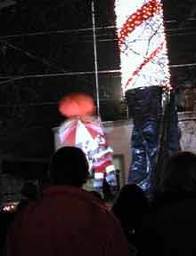 ...and bungees to earth with goodies for the kiddies. |